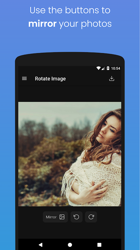 📸 ミラーイメージ: 回転に加えて、写真を水平または垂直にミラーリングして素晴らしい写真を作成するオプションもあります。数回タップするだけでツールの威力を体験してください。