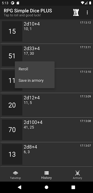 RPG Simple Dice は、テーブルトップ RPG ゲームで最も使いやすいダイス ローラー アプリです。