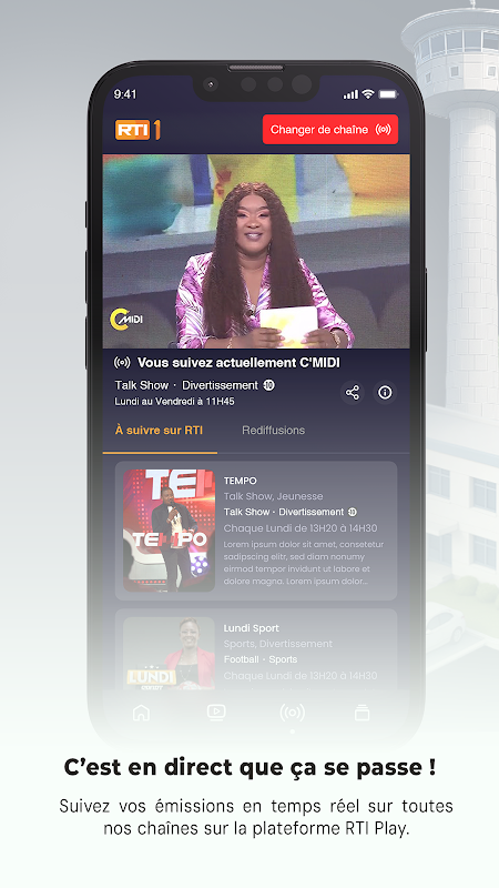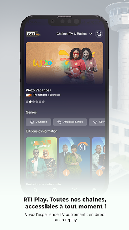 2025年7月初旬に開始されたRTIPlayは、RTIグループの公式デジタルプラットフォームであり、コートジボワール公共放送のテレビ、ラジオ、リプレイコンテンツへの一元的なアクセスを提供します。
