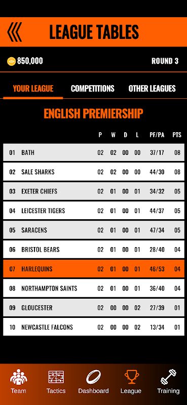 -移籍市場を利用して選手を売買し、ラグビーの財政的制約の中で契約、士気、予算を管理します。