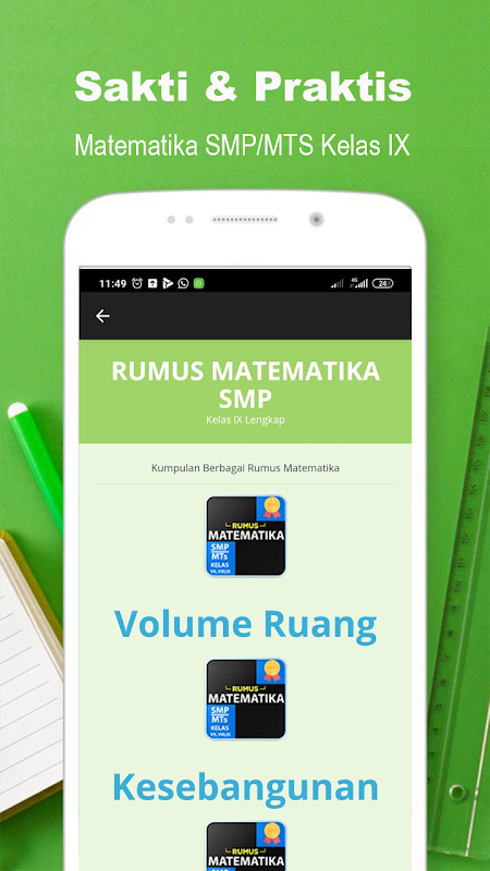 Rumus Matematika SMP/MTs Kelas 7,8,9 - Smart Materi Rahasia Cepat Kuasai Rumus Matematika merupakan aplikasi edukasi Rumus Matematika SMP Lengkap dan pembelajaran tentang materi soal Matematika SMP maupun USBN Matematika SMP.