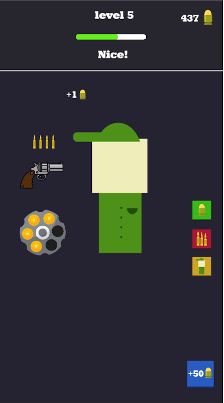 Russian Roulette Clicker - Русская Рулетка Кликер - забавная аркада русской рулетки. В игре есть все: уровни, барабан, оружие, выстрелы, экипировка, поэтапная трудность.