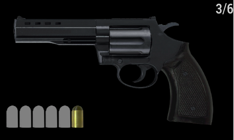 Spin the cylinder on the revolver(gun). Places the muzzle against my head. And pulls the trigger!