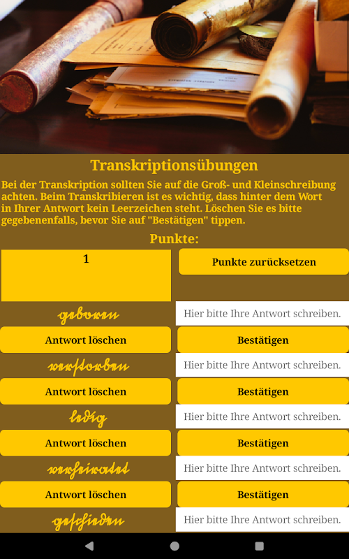 このアプリは、Sütterlin の読み書きを学習できる広告なしのアプリを探している人に適しています。これは、系図学者(趣味/専門家)、古文書学者、歴史家、博物館職員、その他この古代ドイツ語の文字に興味がある人にとって興味深いものです。