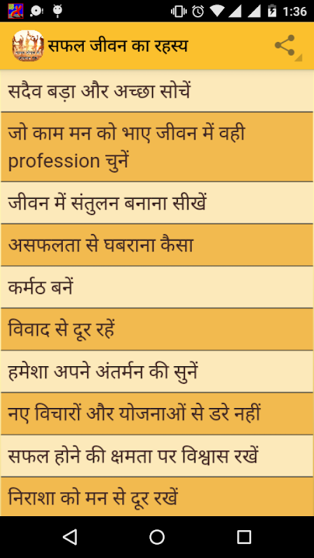 Hum har roz apni zindagi ka jyadatar waqt kuch pane ki soch me bita dete hai par ham ye nahi sochte ki hum ush soch me kya kho rahe hai?. Hum successful hone ke liye itna pagal rehte hai ki iske liye hum kuch bhi karne ko taiyar rehte hai. Hum apna future banane ke chakkar me itna jyada vyast rehte hai ki hum vartmaan me jeena hi chhor dete hai. Humara sharir to vartmaan me hi rehta hai lekin mann future me laga rehta hai. is app me kuch life ke aese tips diye gaye hai jo apko khush kar dege apki jindgi badal dege to der kis bat ke let see this app.