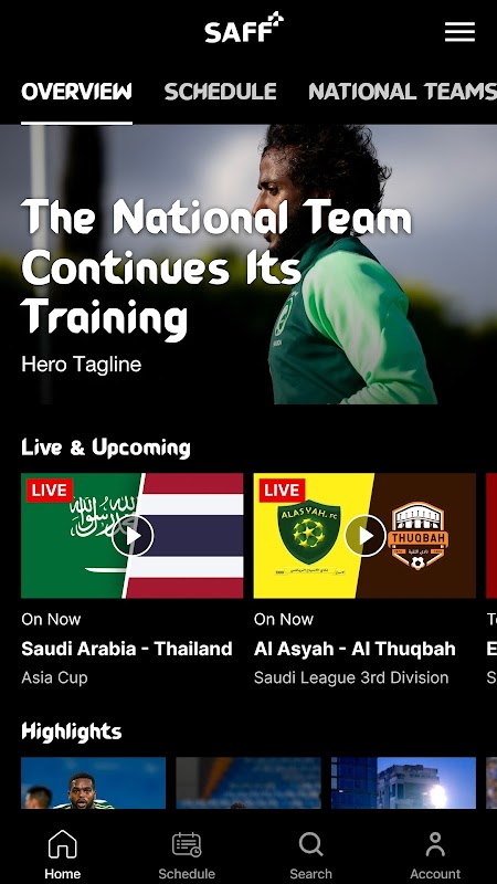 一瞬を見逃す (SAFF+ でのライブ ストリームと試合リプレイ、トップ ゴールのハイライト、重要な試合)