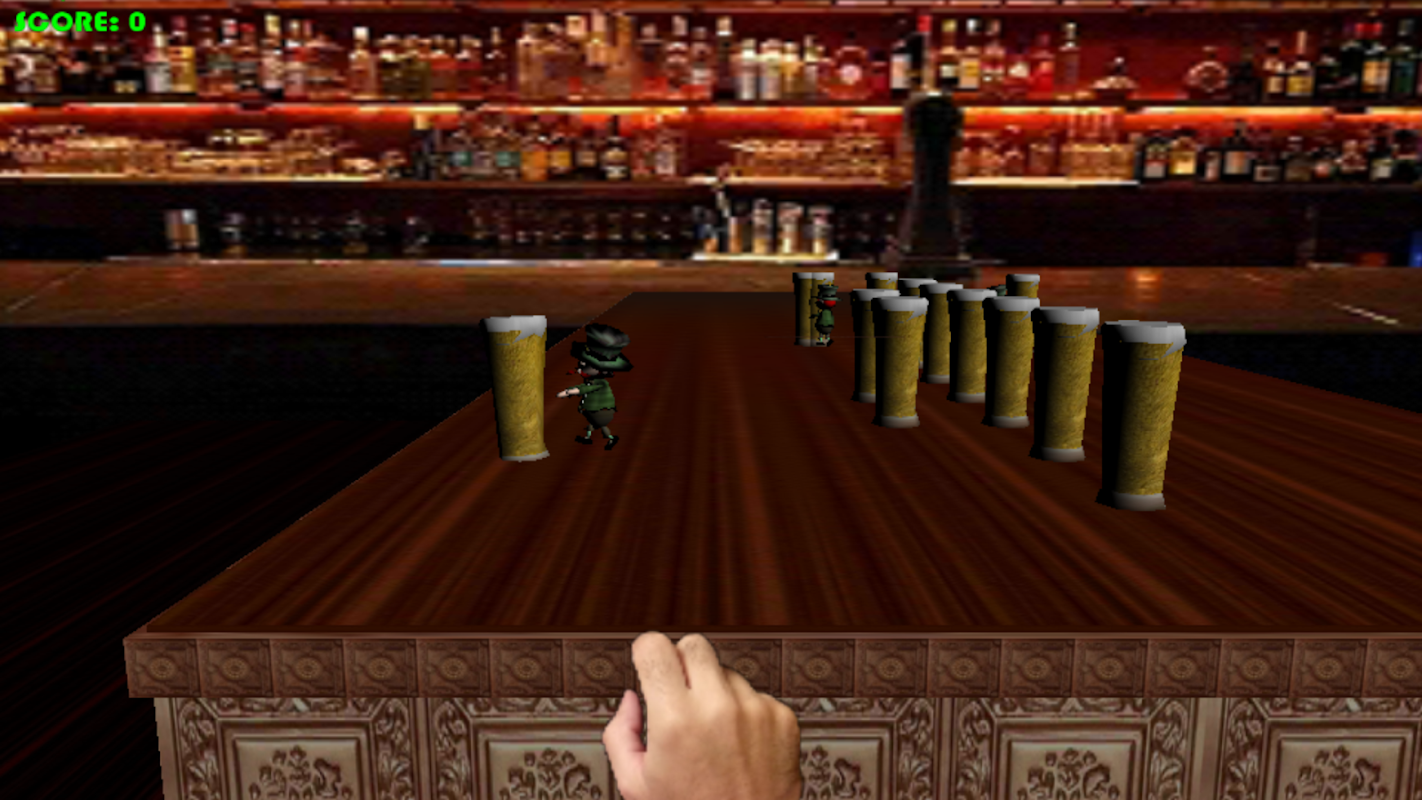 tu cervezas estan desapareciendo en manos de unos duendes, debes tirarles bolas de fuego para evitar que las quiten de la mesa y las tiren