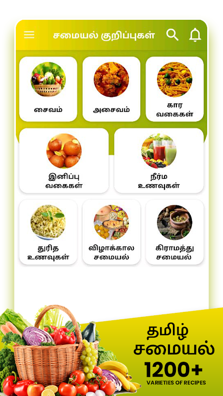 私たちの無料タミルレシピアプリは家庭で調理するレシピ/アイテムの1200+品種を持っています。