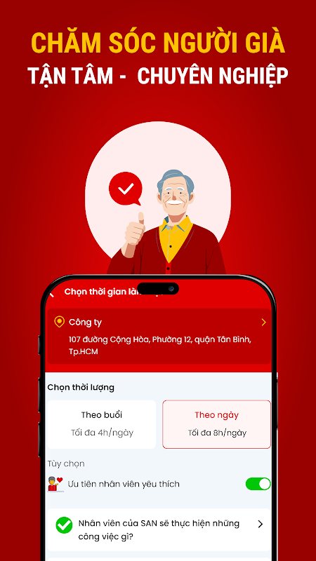 • SAN Patient Care:3つのコアバリューに基づき、在宅および病院で患者ケアサービスを提供します。あらゆる行動に優しさを - 患者ケアは単なる仕事ではなく、助けを必要とする命に対する責任です。 - 透明性 - 明確性 - 時間厳守 - 明確なサービス価格、スタッフは常に時間通りに到着、追加料金はありません。 - 家族のようなケア - SAN Proは、患者が充実したケアを受け、大切な人が休息したり、仕事に集中したりできるよう、安心を提供することを目指しています。