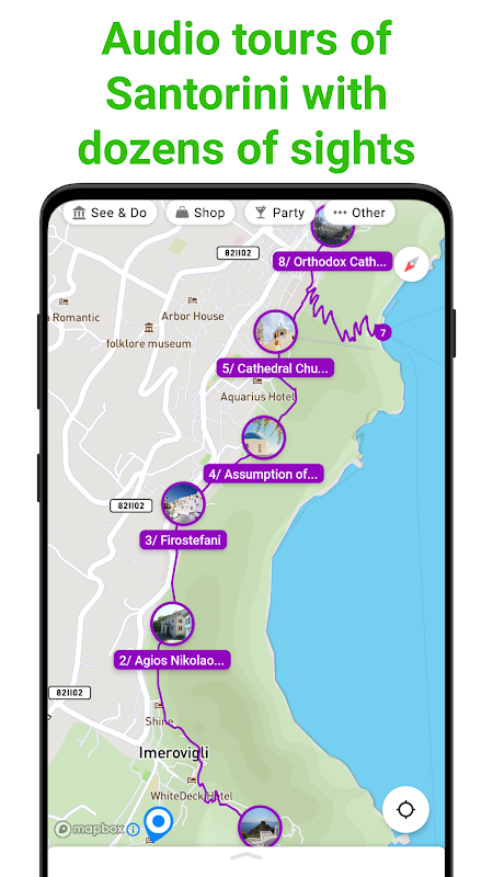 スマートガイドを使えば道に迷うこともなく、必見の観光スポットを見逃すこともありません。 SmartGuide は GPS ナビゲーションを使用して、自分のペースで都合よくサントリーニ島を案内します。現代の旅行者のための観光。