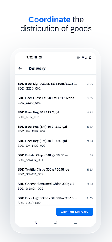 Android 向けの SAP Direct Distribution モバイルアプリでは、場所や時間を問わずに店舗直送を行うことができます。このアプリは SAP Direct Distribution のライトマイル配送と接続します。配達人は日常の配送経路をたどりつつ、Android デバイスから配送を行えるようになります。Android 向け SAP Direct Distribution の主な機能