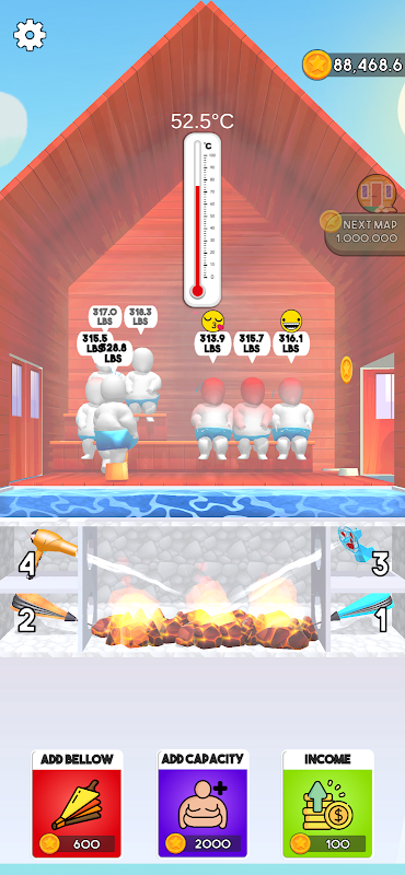 サウナに入った棒人間をタップして体重を減らすことができます。マージを使用すると、このジョブをさらに簡単にすることができます。彼らに汗をかかせる準備をしてください。