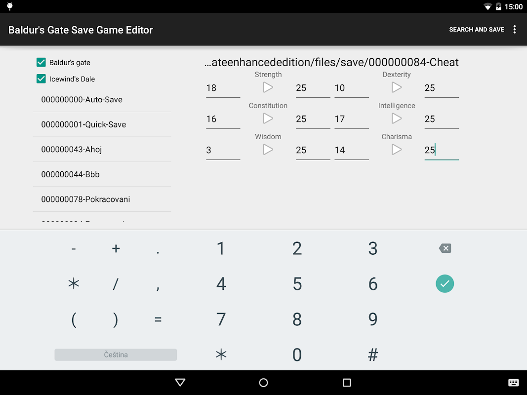 チェックアプリケーションがアクセス許可ストレージ(設定 - >アプリケーション - >バルダーズゲートのための保存ゲームエディタ - >アクセス権 - >ストレージON)を有しています