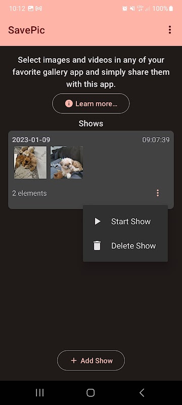 希望の写真アプリで写真を選択し、選択した写真をこのアプリで共有するだけです。これにより、他の人が選択した写真をスワイプするだけでプライバシーを保護できる写真ショーが開始されます.