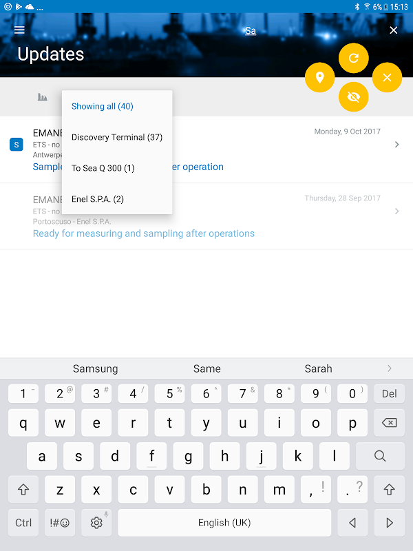 セイボルトアップデートを使用すると、今、あなたのモバイルデバイス上のすべてのご推薦にアクセスすることができます。すべてのノミネートの簡単な概要から恩恵を受ける。遅延、timelogs、解析結果や量測定のリアルタイム更新を受信します。私たちは、あなたがどこ史上ている通知を維持します。アプリから直接あなたのセーボルト担当者を呼び出します。選択した同僚とあなたのノミネートを共有します。第三者へのメールの遅延レポートとtimelogs。