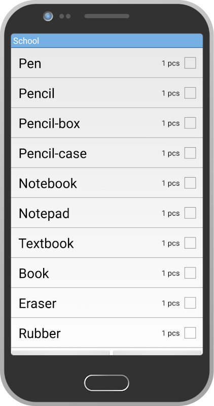 "School bag"allows you to make a list of things to school easily because special suggestions and to calculate a value of all your purchases.