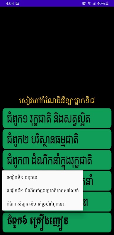 -All lessons in Physics, Chemistry, biography and Earth Science for Grade 8 accordingly to MOEYS