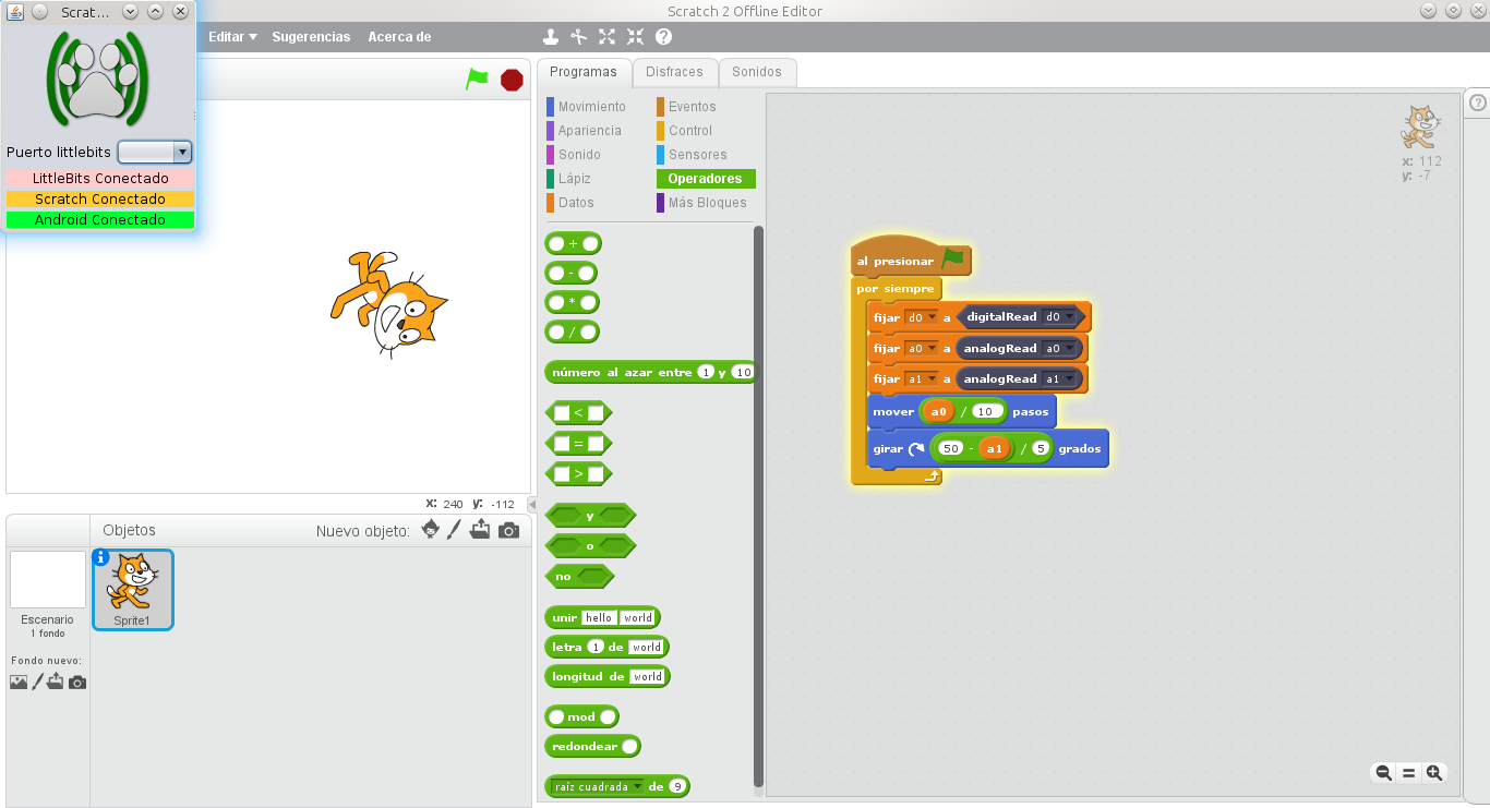 scratch2LittleBitsを通じて2ハンドルをオフラインとlittleBitsスクラッチ
