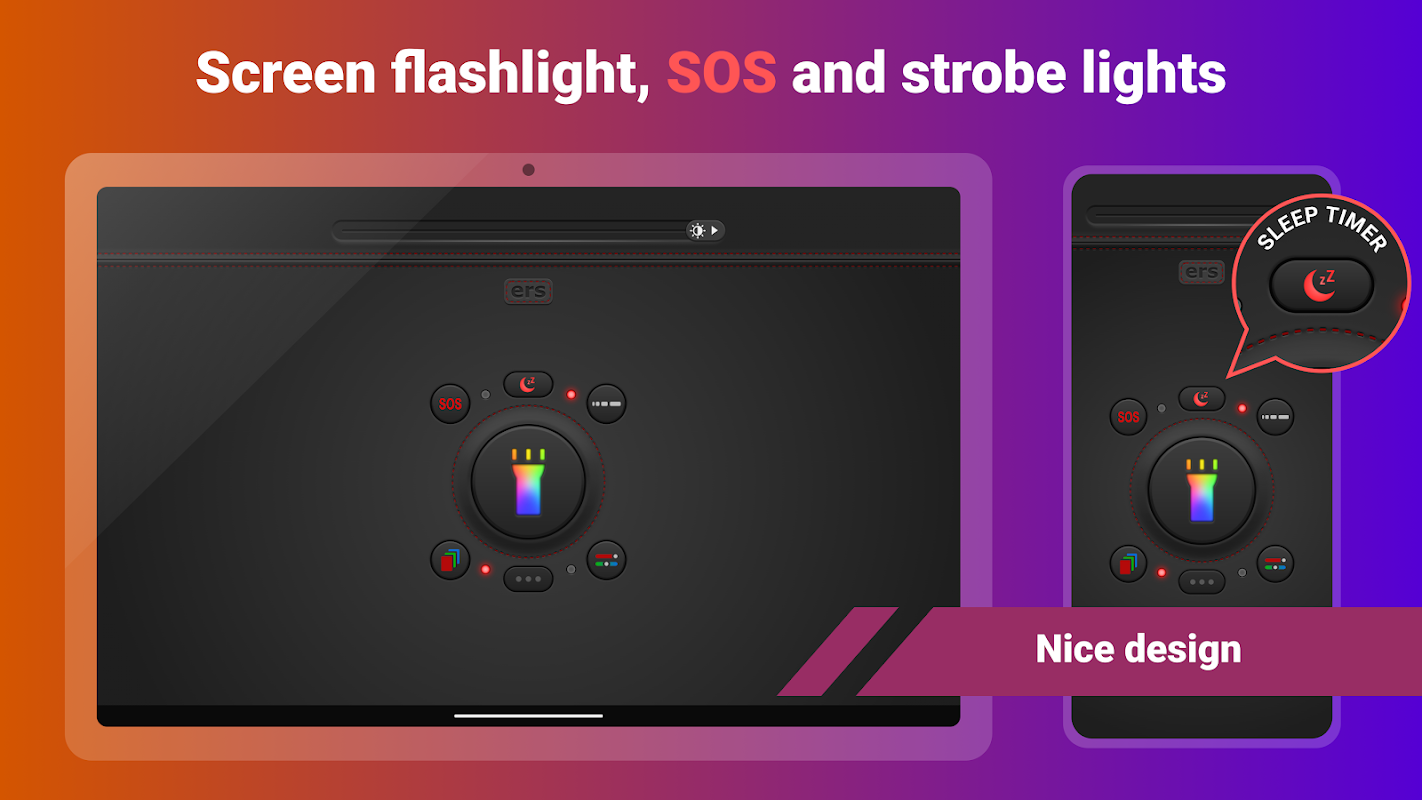スクリーン懐中電灯は、画面のライトを使用してデバイスを便利な懐中電灯に変換し、明るさを制御し、エレガントなデザインになっています。