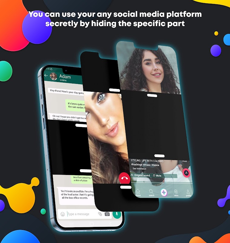 チャット マスクを使用すると、チャット マスク アプリで人々との会話を作成し、参加することができます。 非表示チャット名を使用すると、テキスト メッセージで共有できます。 チャット名を隠すアプリは、チャットを隠すのに役立ち、チャットをマスクしてチャットを隠すのに役立ち、受信メッセージをすべて読んだことが誰にも分からないようにします。 チャット名を隠すは使いやすいアプリケーションです。