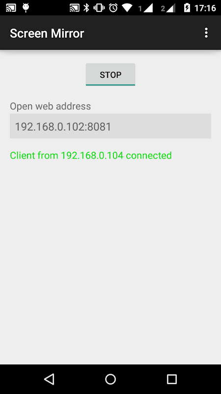Also note that this app tries NOT to be a fully featured streaming app with supports for alternate protocols (like chromecasts or rtmp), its designed to be very small and just a neat tool for displaying your screen for presentations without the hassle of installing something on the client.