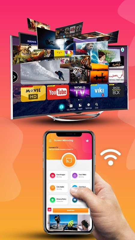 TV 用 Miracast スクリーン ミラーリングは、モバイル画面のワイヤレス ディスプレイを TV ディスプレイにキャストするのに役立ちます。 TV の無料スクリーン ミラーリングを使用すると、Screen Share とワイヤレス ディスプレイ アダプターを使用して TV 画面でモバイル コンテンツを楽しむことができます。 無料のスクリーン ミラーリングとワイヤレス ディスプレイ アダプターは、スマート スクリーン シェア リソースを持たずに小さな電話のディスプレイを常に見ていることに飽きてしまった場合に最も役立ちます。 この Miracast Screen Mirroring および Smart View サービス提供アプリを使用して、携帯電話を大きなテレビ画面にキャストできるので、心配はいりません。