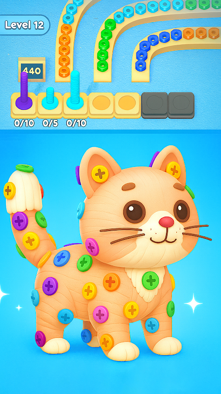 🌈 バラエティに富んだチャレンジ – ゲームを進めるにつれて、色、ネジの種類、チャンクモデルが増えていきます。