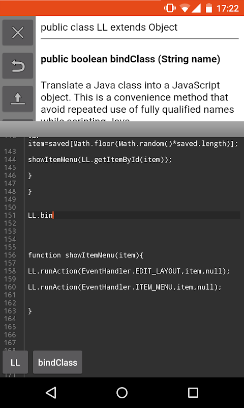 このツールは、スクリプトAPIページへのリンクが起動されたとき、たとえばLightning Launcherからスクリプトエディターの関数を長押ししたときに、画面の上部にサイズ変更可能なポップアップを表示します。