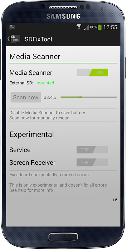 SDFixToolMediaScanner保存バッテリーを無効にします手動で再スキャンSDエラーを防ぐ