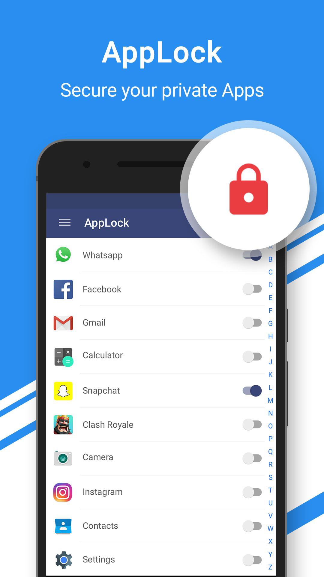 - Lock apps with password lock, pattern lock, or upcoming fingerprint lock