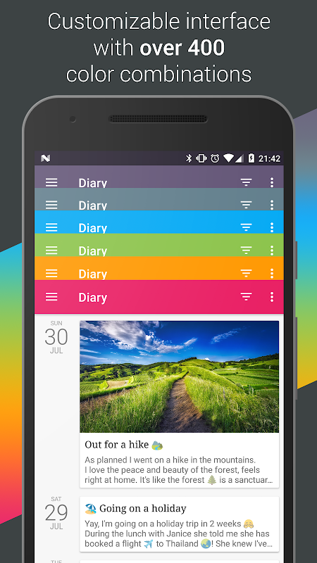 The interface is completely customizable letting you change the primary and accent colours, making the app a true my Secret diary