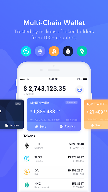 Secrypto Wallet supports multi blockchain such as BTC,ETH,EOS, and will support 1000+ tokens.