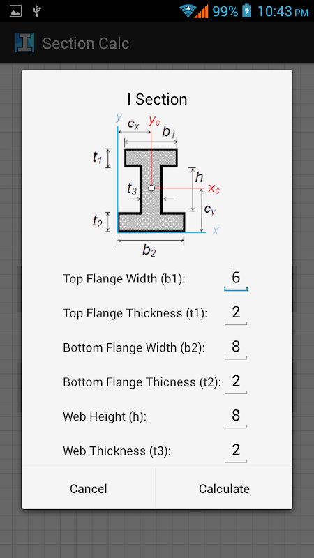 セクションのプロパティを計算するための土木/機械エンジニアのための便利なアプリ。