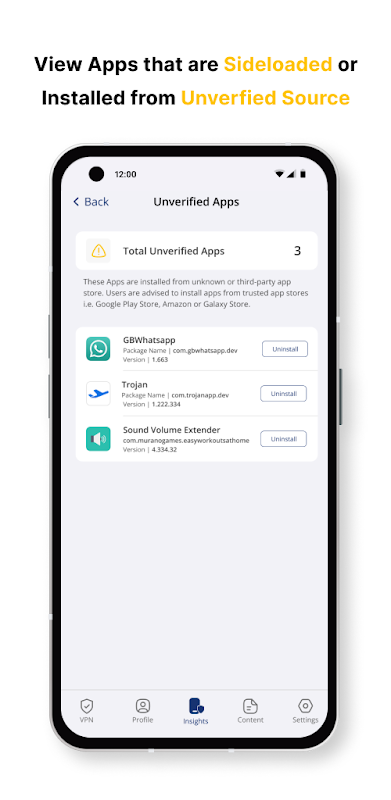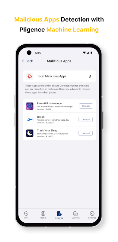 • マルウェア保護: インストールされているアプリケーションを監視し、悪意のあるアプリや疑わしいアプリを識別してフラグを立てます。悪意のあるアプリがデバイスや企業ネットワークに損害を与える前に削除するようユーザーに促します。