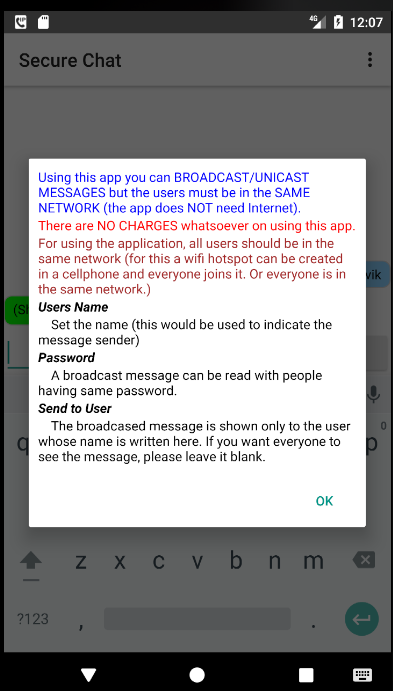 あなたがローカルネットワーク内にあるが、インターネットに接続されていない(例えばピクニック旅行中や旅行をハイキング中のため、空港、または教室で)あなたの友人と話をする必要がある場合は、インターネットを使用せずにチャットするために、このアプリを使用することができます。