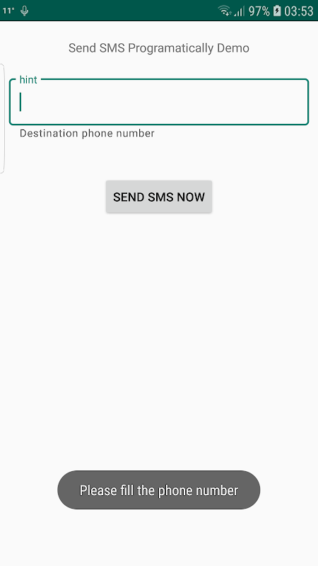 プログラムでSMSを送信するAndroid 8、Kotlin DEMO