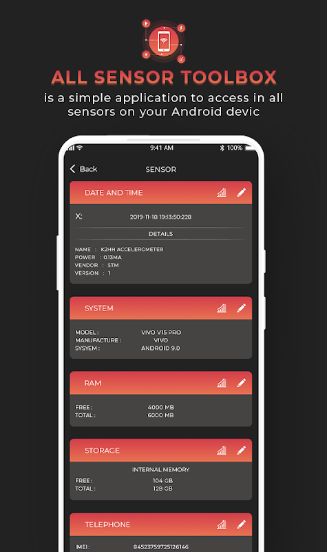 This is the absolute all-in-one diagnostic tool that lets you know virtually everything about your mobile device status. Get full information about all sensors supported by your tablet, smartphone or wearable device. View in comfortable layout all data from your mobile device sensors in real time, make a sensors tests.