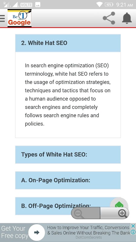 Off Page: It refers to all the things that you can do directly OFF your website to help you rank higher. The more and better votes (links) you can get to your website or your webpage the better it will rank in search results. Link building is the word that refers to off-page SEO in the best manner. Off page Techniques are:
