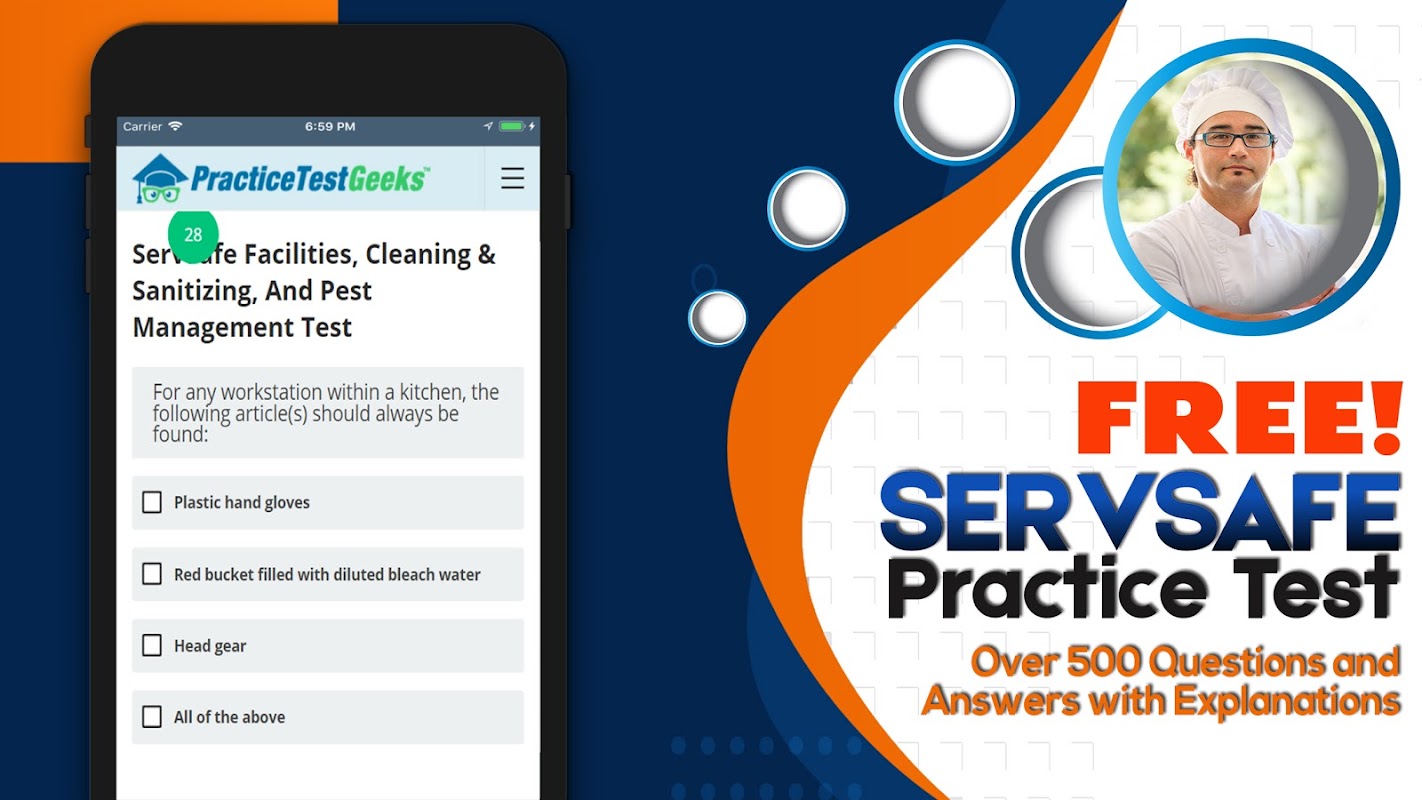 試験のスタイル、内容、難易度は実際のServSafeと似ています