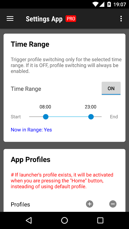 アプリごとにプロファイルを作成できます。 アプリを起動すると、対応するプロファイルが適用されます。 その後、通常どおり設定を調整できます。 プロファイルはアプリの設定テンプレートとして機能し、アプリの起動時にのみ適用されます。 デフォルトのプロファイルも設定してください。 他のすべてのアプリを実行しているとき、および画面がオフのときに適用されます。
