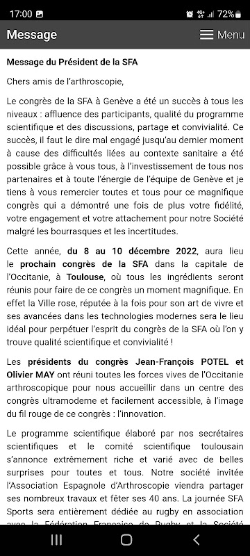 フランコフォン関節鏡学会の会議の公式アプリケーション