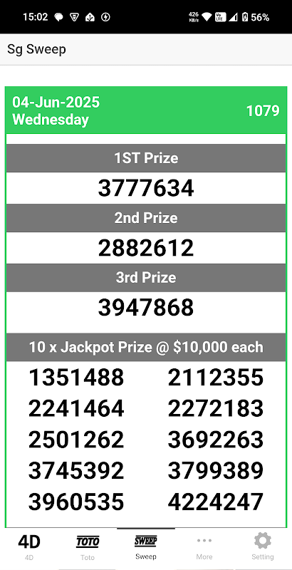 4D、トト、スイープ結果シンガポールのオールインワンアプリ