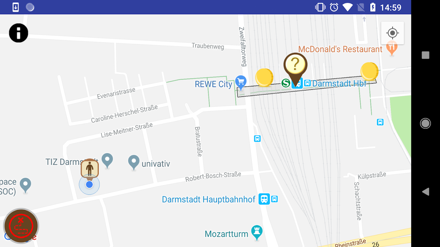 Der Erfolg des Vorhabens soll im Rahmen einer Nutzerstudie im Rhein-Main Gebiet mit Schwerpunkt Offenbach bestimmt werden. Die Fachgruppe Neue Mobilität der Frankfurt University of Applied Sciences führt dazu entsprechende Befragungen durch. Die beiden Klein- und Mittelständischen Unternehmen wer denkt was und Rösch & Associates Information Engineering sind für die Entwicklung der App und eines Informationsportals zuständig; die Serious Games Gruppe der TU Darmstadt für die spielerischen Elemente und die Aktivitätserkennung.