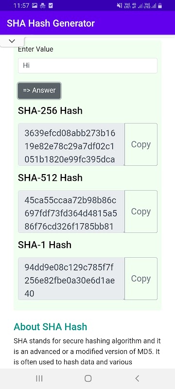 この SHA ジェネレーター アプリは、ワンタップで指定された文字列の SHA ハッシュを生成します。