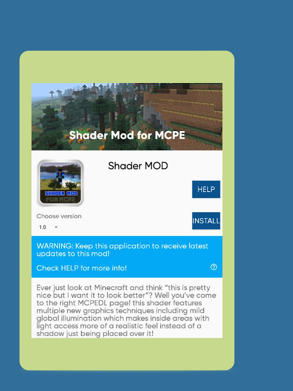 Shader Addon for MCPE is an application that give you the easiest way to install Shader Addon into your Minecraft world.