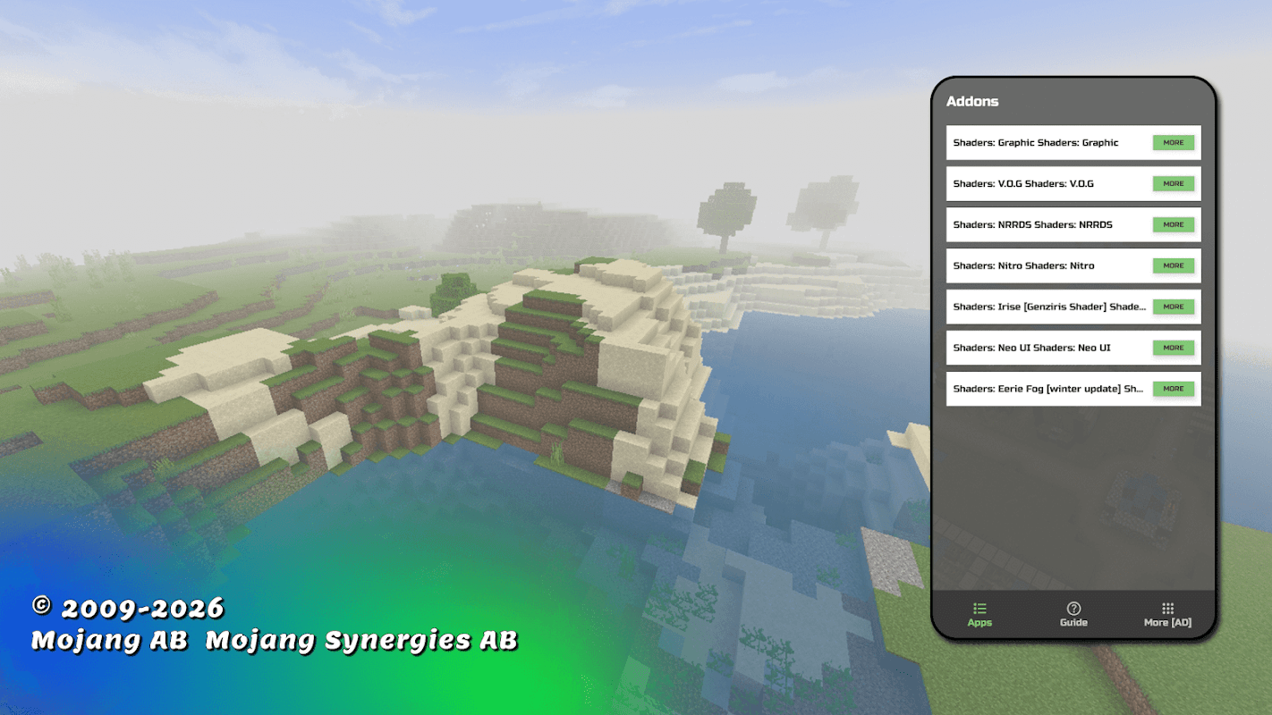 ゲーム内のすべてのバイオームの外観がかなり単調であるという事実を我慢することにうんざりしていませんか?少なくともいくつかの Minecraft 用のシェーダーをゲームに取り入れたいのですが、mcpe 用の興味深い MOD が見つかりませんか?我慢するのはやめてください! Minecraft 用の動作するシェーダーしか持っていないため、私たちのアカウントに来てください。さらに、取り付けも非常に簡単です。数回クリックするだけで、mcpe 用の優れたシェーダーが得られ、使用できるようになります。マインクラフトのシェーダーを使ってバイオームがどのように変化するかを確認してみましょう。そして、シェーダー MOD があなたの世界をどのように変えるかを見たら、友達はどれほど驚くことでしょう。