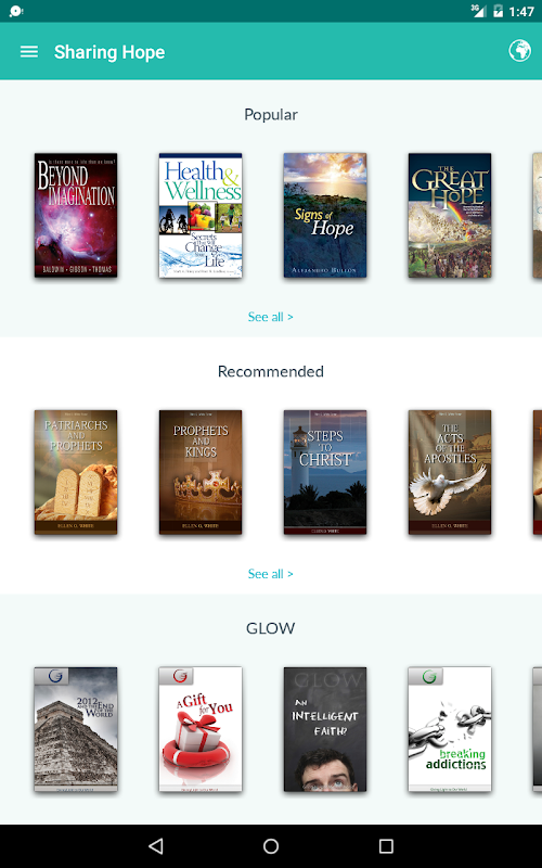 The Sharing Hope App contains a large collection of books that brings hope in six languages: English, Spanish, Portuguese, French, Italian, and Russian.