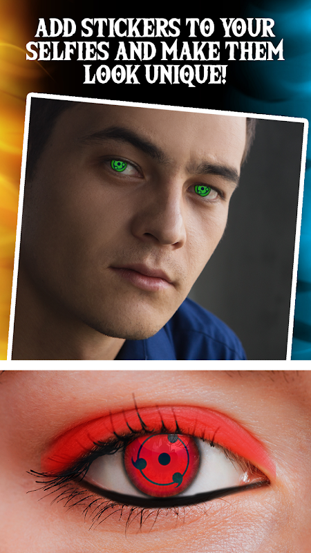 ⚡ お気に入りのスーパーヒーローになる準備をしてください!写真の外観を変更すると、誰もあなたを認識しません! "写輪眼色チェンジャー-写真編集者"は新しい"フォトモンタージュ"メーカーで、"変身アプリ"と"写真ステッカー"は幻想的な"色付きの連絡先"で普通のセルフィーを修正し、すべての写真に超自然的な写真効果を与えます! Android™スマートフォンとタブレット写輪眼色チェンジャー-写真編集者用のこのユニークな"フェイスチェンジャー"は、セルフィーにまったく新しい次元をもたらします。美しい"アニメの目"と"マンガの目"が得られ、写真にパワフルな外観を与えます。いくつかの色の効果を追加するだけで本物の忍者になります!選択肢はあなた次第です。サスケの目、リンネガンの目、燃えるような赤、エレクトリックブルー、ネオングリーンまたは明るい黄色のコンタクトレンズが付いたナルトの目。この驚くべき"アイカラーチェンジャー"を試してみてください。これらの"異なる色の目"を使用すると、すべての友人やフォロワーの注意を引くことができます。
