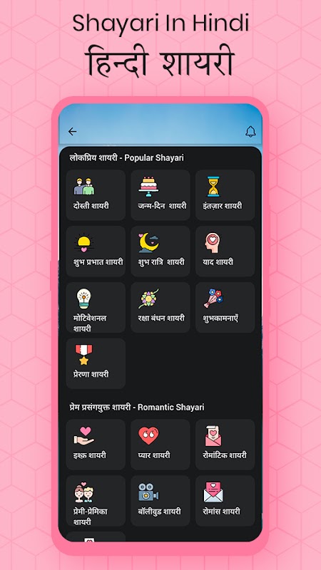 ヒンディー語シャヤリアプリでは、リズミカルな言葉であらゆる形の感情を説明できます。これは、最新のpyar mohaabat shayariの最高のコレクションの1つであり、完全に無料で、インターネット接続は必要ありません。