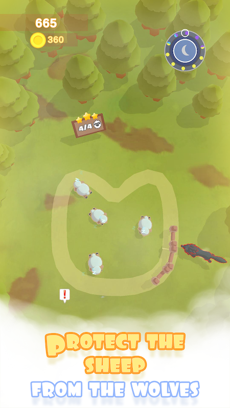 マップ上では、羊の動きとオオカミの動きに応じて、行動を計算する必要があります。画面をタップまたはピンチしてフェンスの動きを制御して、農場の羊を保護し、オオカミがそれらに到達するのを防ぎます。